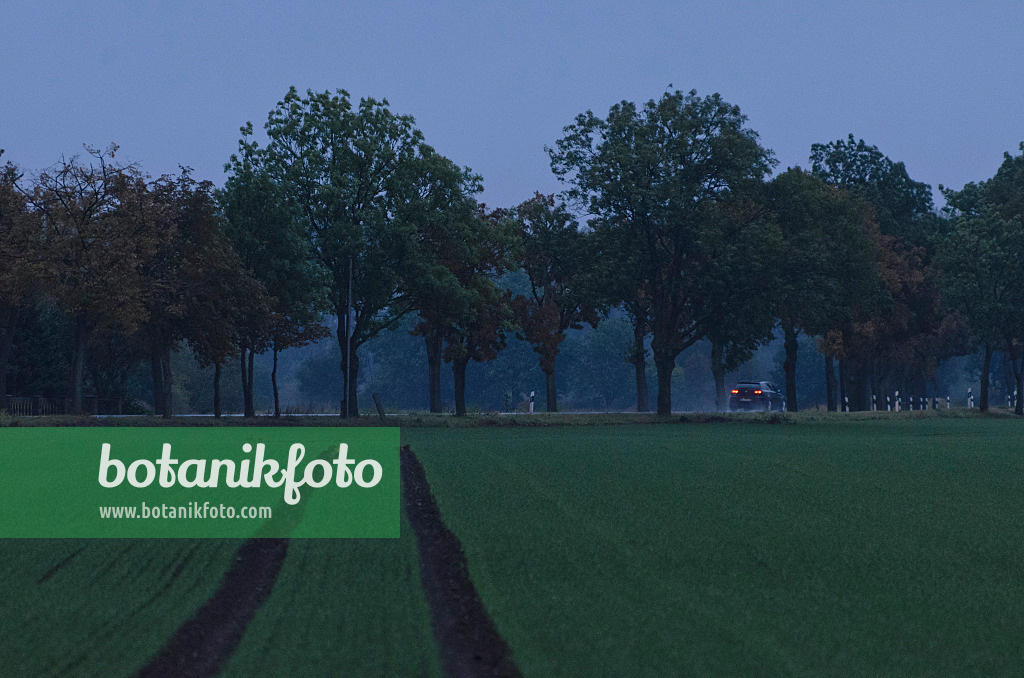 Allee in der Abenddämmerung, Brandenburg, Deutschland