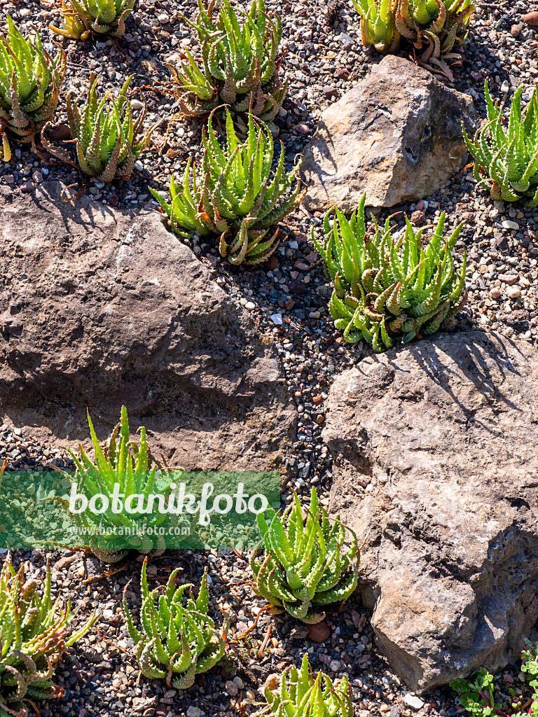 Aloe (Aloe humilis) zwischen Felssteinen im Sonnenlicht