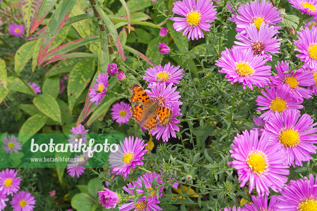 Astern (Aster) und C-Falter (Polygonia c-album syn. Nymphalis c-album)