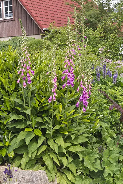 Bartiris (Iris barbata), Roter Fingerhut (Digitalis purpurea) und Salbei (Salvia)