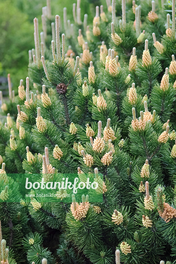Pinus mugo, auch Bergkiefer oder Latschenkiefer genannt, ist ein immergrüner Nadelbaum aus der Familie der Kieferngewächse. Sie wächst strauchartig und ist in den Gebirgen Europas heimisch. Die Pflanze ist extrem widerstandsfähig und verträgt raue Klimabedingungen. Sie wird oft zur Bodenbefestigung und als Zierpflanze genutzt. Ihre Nadeln sind dunkelgrün und kurz, die Zapfen klein und eiförmig.