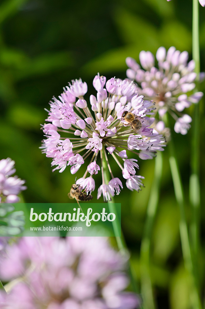 Berglauch (Allium senescens subsp. senescens) und Bienen (Apis)