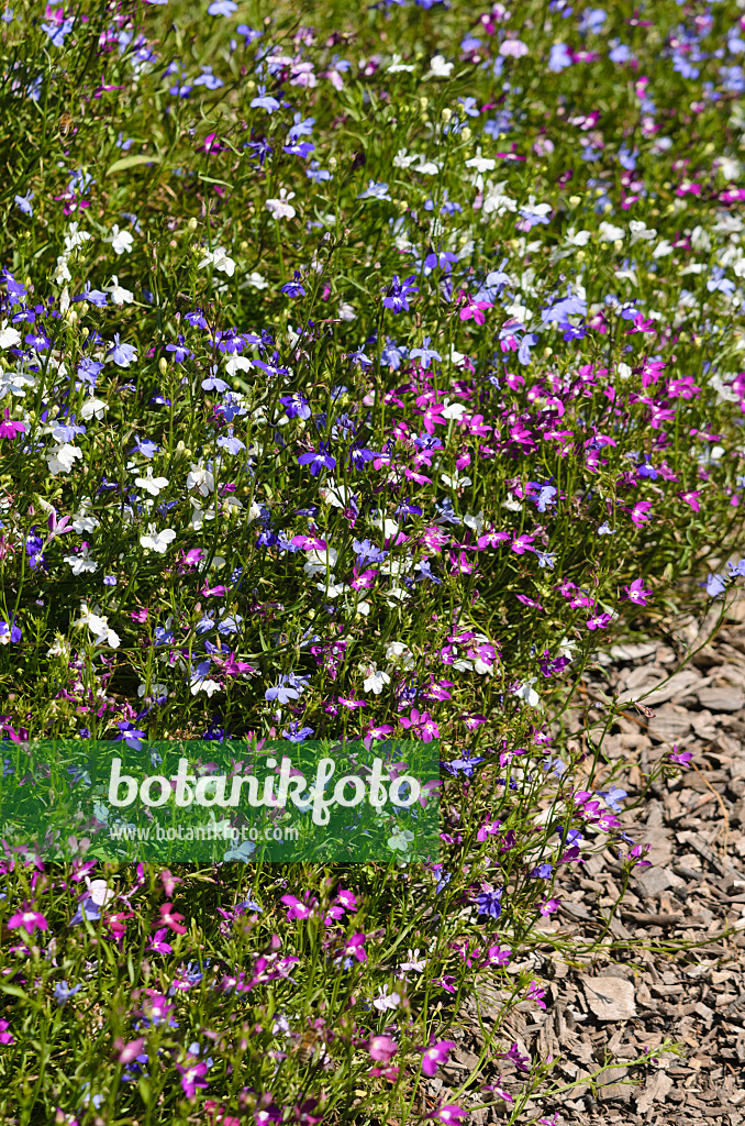 Lobelia erinus, auch bekannt als Männertreu, ist eine einjährige Pflanze mit kleinen, intensiv blauen, violetten oder weißen Blüten. Sie bevorzugt sonnige bis halbschattige Standorte und feuchte, gut durchlässige Böden. Ideal für Beete, Rabatten oder als Ampelpflanze. Blütezeit von Mai bis Oktober. Pflegeleicht, aber frostempfindlich.
