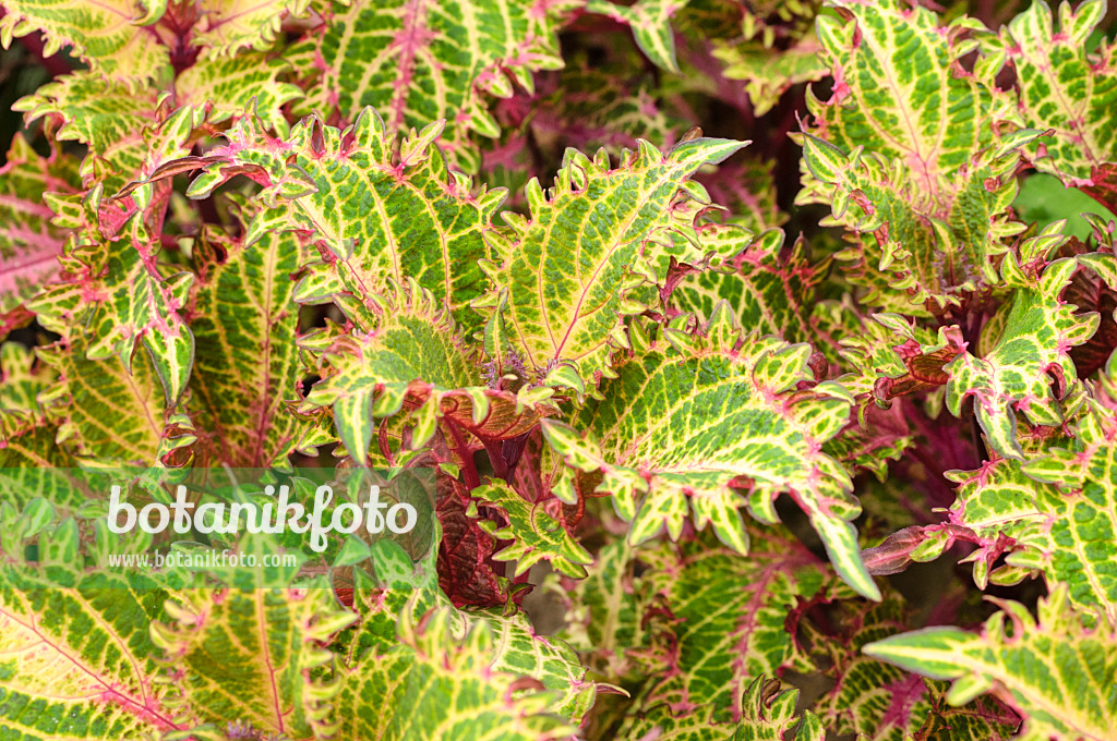 Solenostemon scutellarioides, auch bekannt als Buntnessel oder Coleus, ist eine beliebte Zierpflanze mit auffällig gefärbten Blättern. Sie stammt aus tropischen Regionen und wird oft als Zimmerpflanze oder einjährige Gartenpflanze genutzt. Die Blätter zeigen intensive Farben wie Rot, Grün, Gelb und Lila. Sie bevorzugt helle, indirekte Lichtverhältnisse und feuchte, gut drainierte Böden. Die Pflanze ist einfach zu pflegen und eignet sich gut für Beete, Töpfe oder als Balkonpflanze.