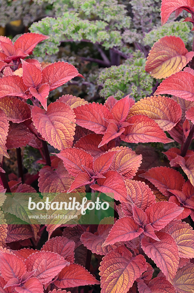 Solenostemon scutellarioides, auch bekannt als Buntnessel oder Coleus, ist eine beliebte Zierpflanze mit auffällig gefärbten Blättern. Sie stammt aus tropischen Regionen und wird oft als Zimmerpflanze oder einjährige Gartenpflanze genutzt. Die Blätter zeigen intensive Farben wie Rot, Grün, Gelb und Lila. Sie bevorzugt helle, indirekte Lichtverhältnisse und feuchte, gut drainierte Böden. Die Pflanze ist einfach zu pflegen und eignet sich gut für Beete, Töpfe oder als Balkonpflanze.