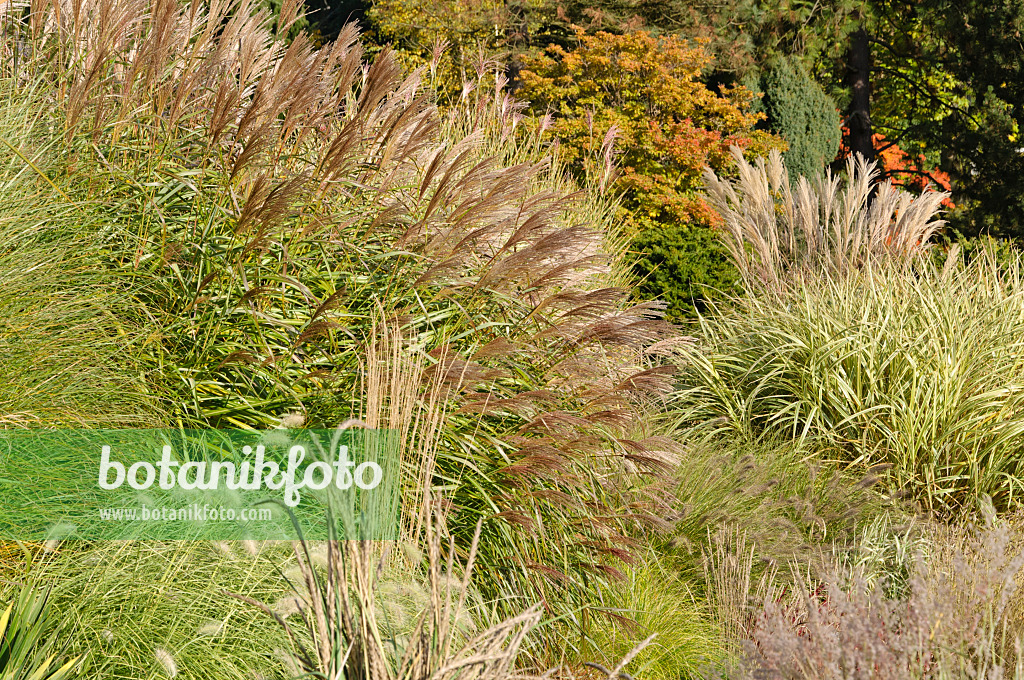 Miscanthus sinensis, auch bekannt als Chinaschilf, ist eine mehrjährige Ziergrasart aus der Familie der Süßgräser. Es stammt aus Ostasien und wird wegen seiner dekorativen Blütenstände und anmutigen Wuchsform geschätzt. Die Pflanze erreicht Höhen von 1 bis 2,5 Metern und bildet dichte Horste mit schmalen, überhängenden Blättern. Sie blüht im Spätsommer bis Herbst mit silbrigen bis rötlichen Rispen. Chinaschilf ist winterhart, pflegeleicht und bevorzugt sonnige Standorte mit durchlässigem Boden. Es eignet sich gut für Gärten, als Sichtschutz oder in Staudenbeeten.