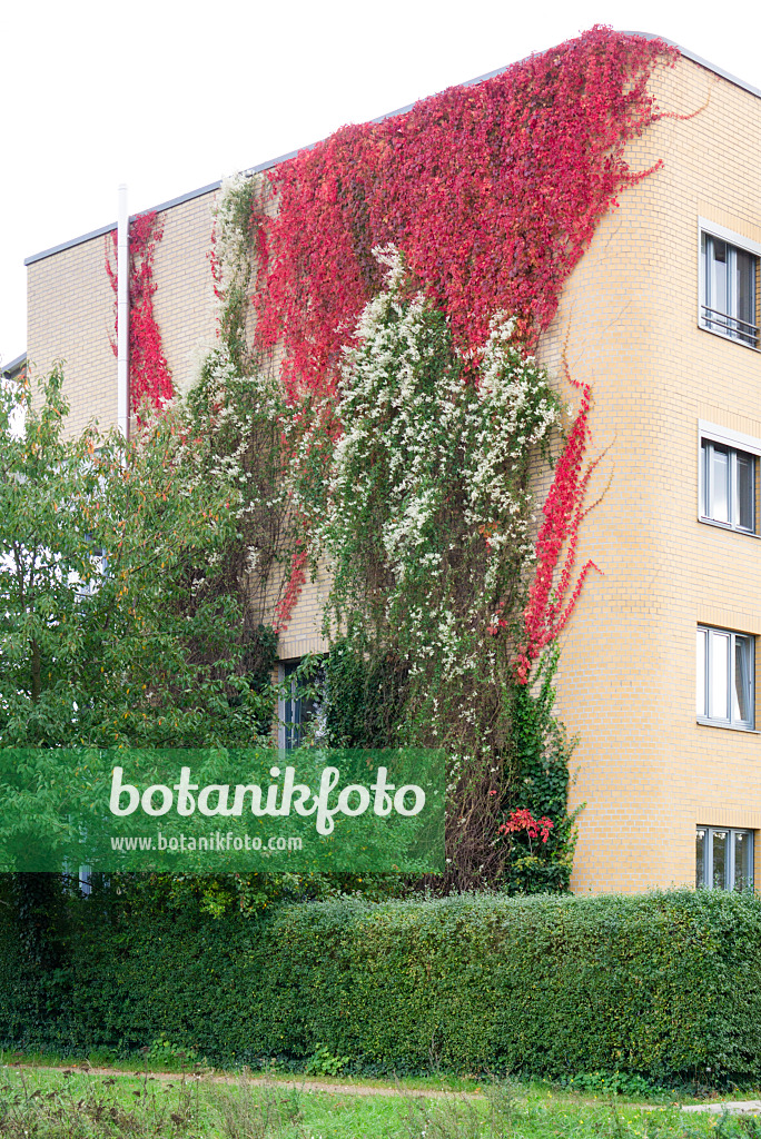 Chinesischer Knöterich (Fallopia aubertii syn. Polygonum aubertii) und Selbstkletternde Jungfernrebe (Parthenocissus quinquefolia)