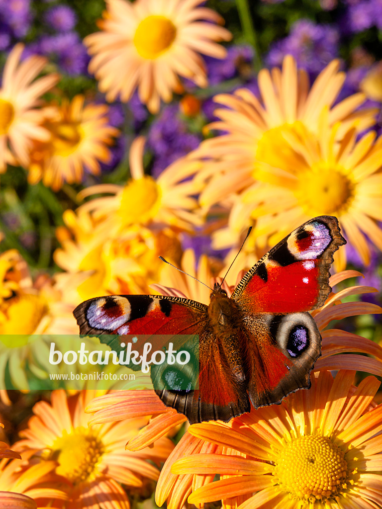 Chrysantheme (Chrysanthemum rubellum 'Mary Stoker') und Tagpfauenauge (Inachis io)