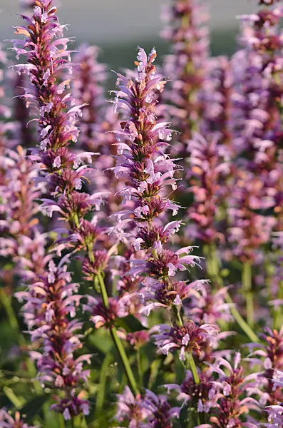Dekorative Dahlie (Dahlia Babylon Red) und Duftnessel (Agastache)