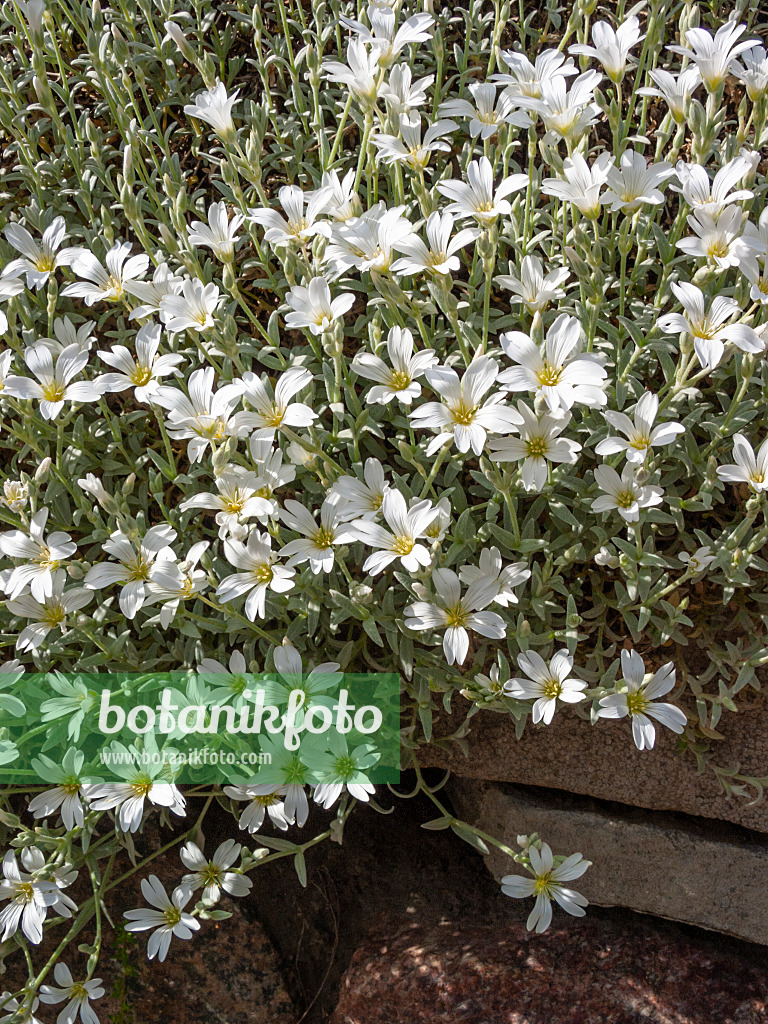 Cerastium tomentosum, auch Filziges Hornkraut genannt, ist eine niedrig wachsende, winterharte Staude. Sie bildet silbrig-weiße, filzige Blätter und kleine weiße Blüten im Frühling. Ideal für Steingärten, Trockenmauern oder als Bodendecker, da sie trockenheitsresistent und pflegeleicht ist. Bevorzugt sonnige Standorte und durchlässige Böden.