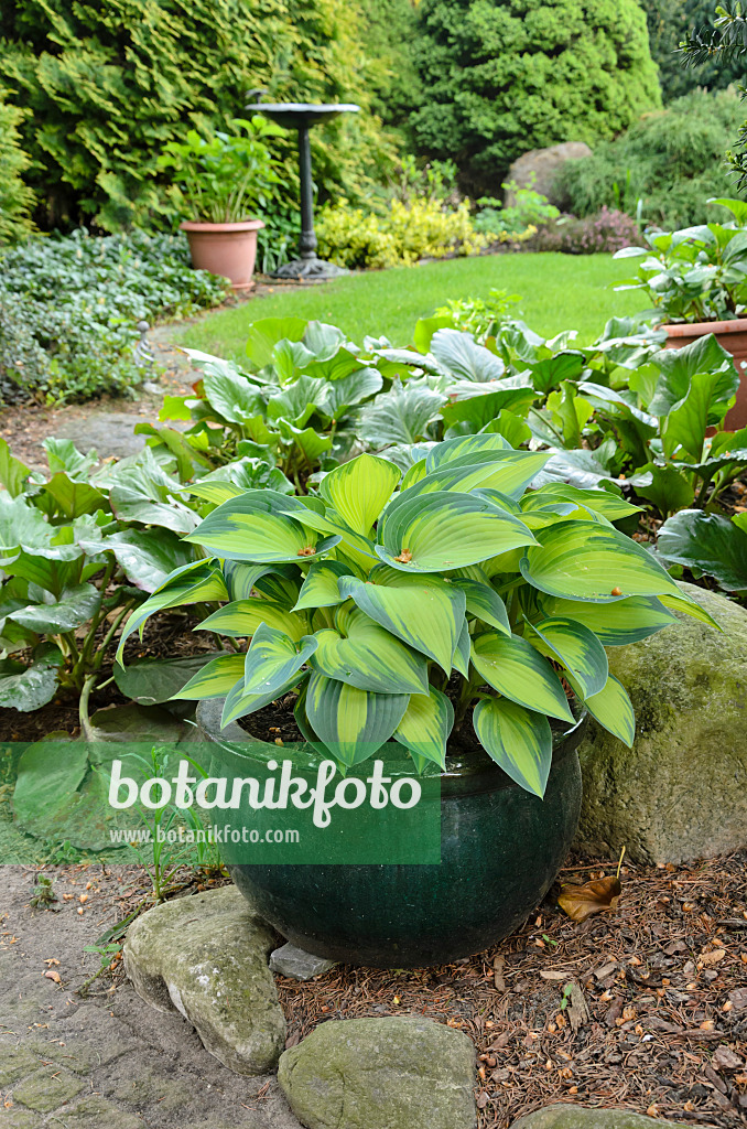 Funkie (Hosta) in einem Blumenkübel