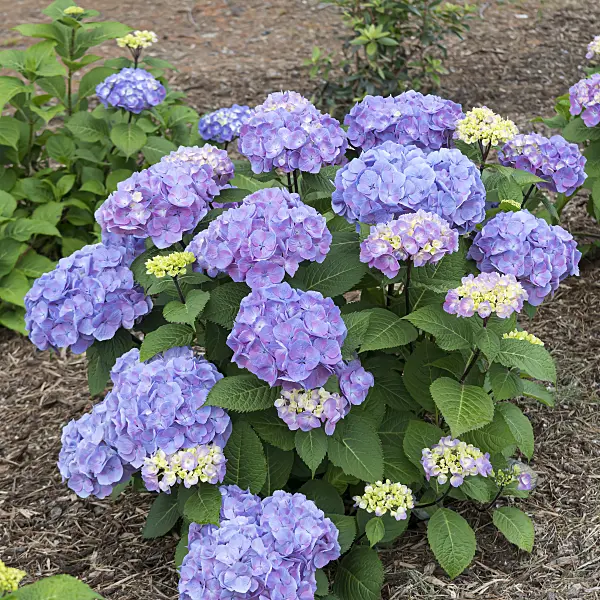 Funkie (Hosta) und Gartenhortensie (Hydrangea macrophylla 'Red Ace')