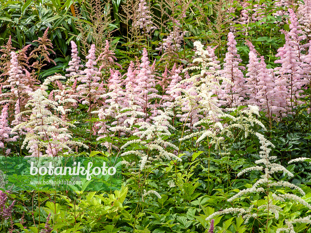 Astilbe x arendsii, auch Prachtspiere genannt, ist eine beliebte Staude für schattige Gärten. Sie bildet fedrige Blütenrispen in Weiß, Rosa oder Rot und blüht von Juni bis August. Die Pflanze bevorzugt feuchte, humusreiche Böden und eignet sich gut für Gehölzränder oder Teichufer. Sie wird etwa 60-100 cm hoch und ist winterhart.