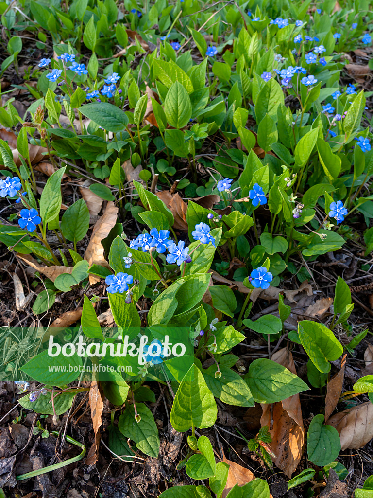 Omphalodes verna, auch bekannt als Frühlings-Gedenkemein, ist eine mehrjährige Staude aus der Familie der Raublattgewächse. Sie bildet herzförmige Blätter und kleine, hellblaue Blüten, die an Vergissmeinnicht erinnern. Die Pflanze bevorzugt schattige bis halbschattige Standorte und feuchte, humusreiche Böden. Sie blüht von März bis Mai und eignet sich gut als Bodendecker in schattigen Gärten.