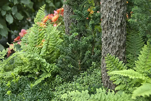 Gewöhnliche Eibe (Taxus baccata) mit Steingewichten