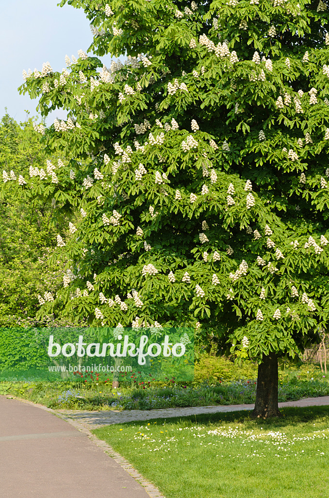 Die Rosskastanie (Aesculus hippocastanum) ist ein großer Laubbaum, der in Südosteuropa heimisch ist. Sie wird oft als Zierbaum gepflanzt und ist für ihre auffälligen weißen Blütenkerzen und die stacheligen Früchte bekannt. Die Samen (Kastanien) sind für Menschen giftig, werden aber in der Volksmedizin genutzt. Der Baum bevorzugt sonnige Standorte und ist robust gegen städtische Bedingungen.