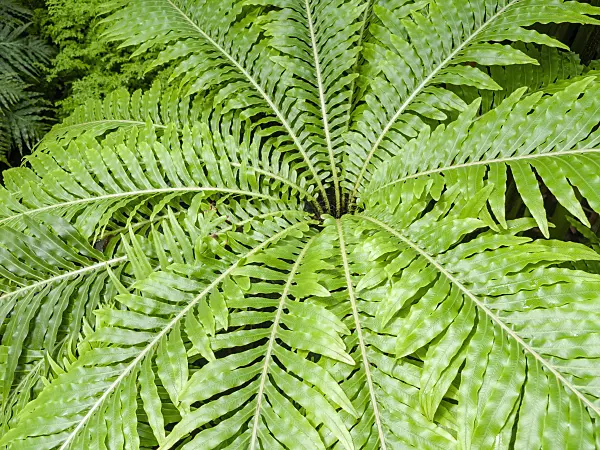 Blechnum spicant, auch bekannt als Rippenfarn, ist ein immergrüner Farn, der in feuchten Wäldern Europas und Nordamerikas vorkommt. Er bildet zwei Arten von Wedeln: sterile, flache und fertile, aufrechte. Bevorzugt schattige Standorte mit saurem, feuchtem Boden. Ideal für naturnahe Gärten oder Moorgärten.
