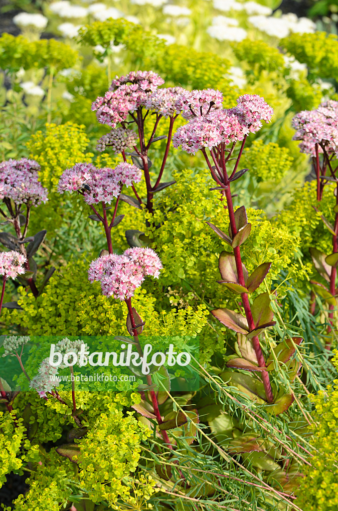 Große Fetthenne (Sedum telephium 'Matrona' syn. Hylotelephium telephium 'Matrona') und Steppenwolfsmilch (Euphorbia seguieriana)