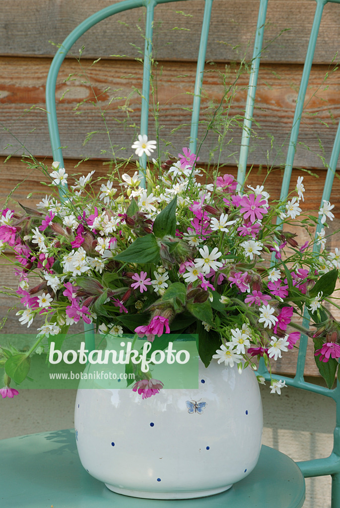 Große Sternmiere (Stellaria holostea) und Rote Lichtnelke (Lychnis dioica syn. Silene dioica)