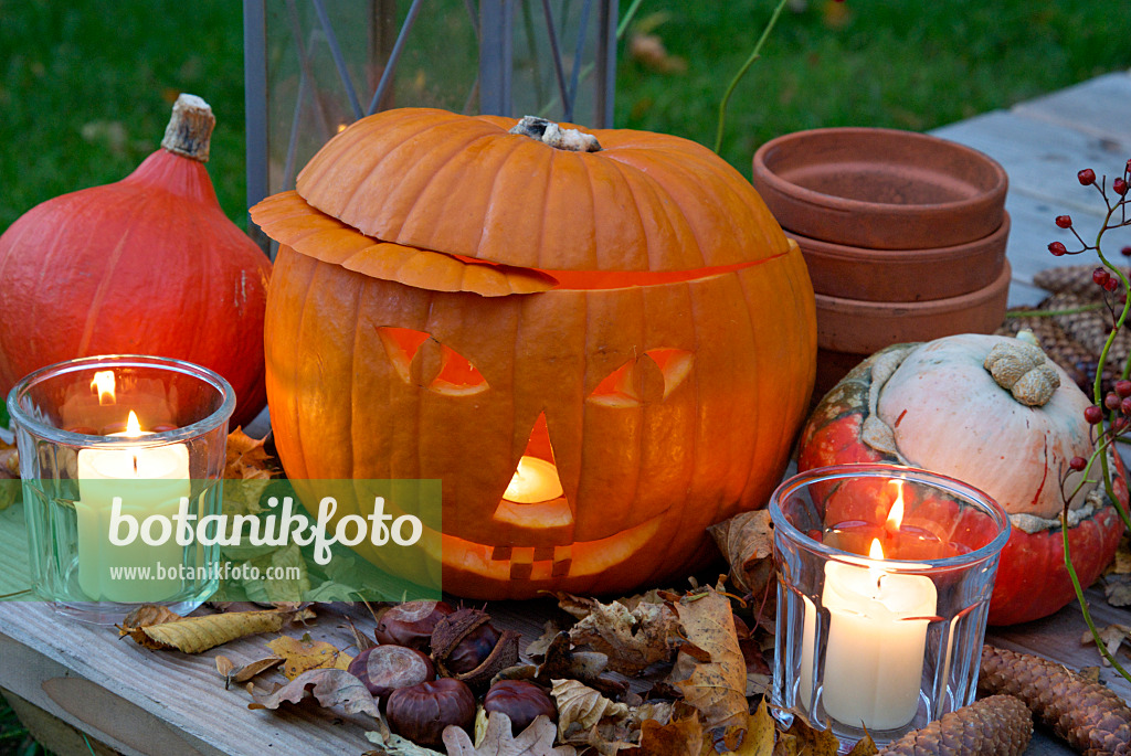 Halloweenkürbis mit Windlichtern
