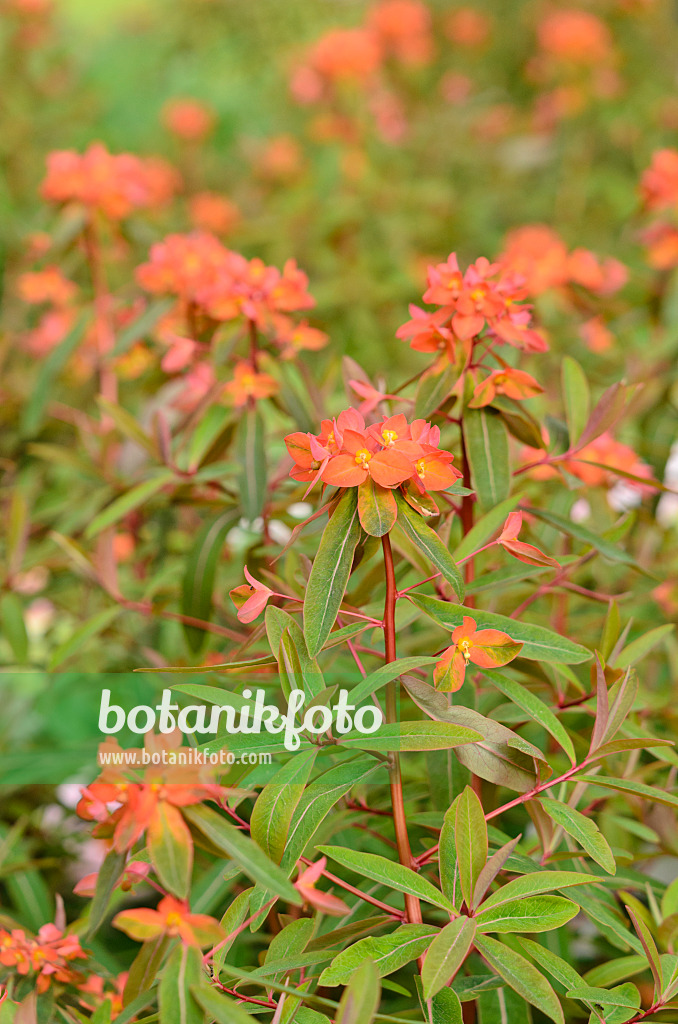 Euphorbia griffithii, auch bekannt als Griffiths Wolfsmilch, ist eine mehrjährige Staude aus der Familie der Wolfsmilchgewächse. Sie stammt aus dem Himalaya und zeichnet sich durch orange-rote Hochblätter aus, die im Frühsommer erscheinen. Die Pflanze bevorzugt sonnige bis halbschattige Standorte und feuchte, durchlässige Böden. Sie wird etwa 60-90 cm hoch und ist winterhart. Achtung: Wie alle Wolfsmilcharten enthält sie giftigen Milchsaft.