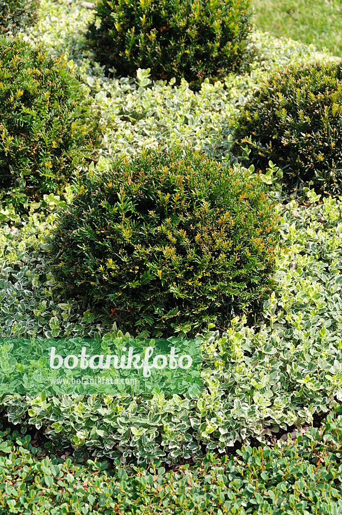 Hinoki-Scheinzypresse (Chamaecyparis obtusa 'Nana Gracilis') und Kletternder Spindelstrauch (Euonymus fortunei var. radicans 'Emerald Gaiety')