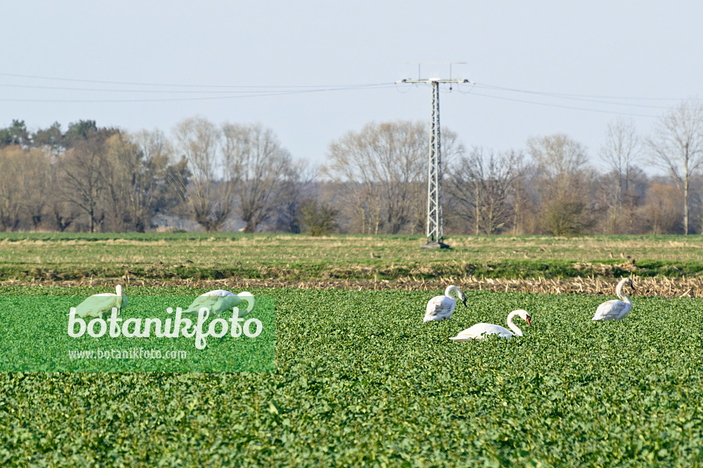 Höckerschwäne (Cygnus olor) auf einem Feld, Brandenburg, Deutschland