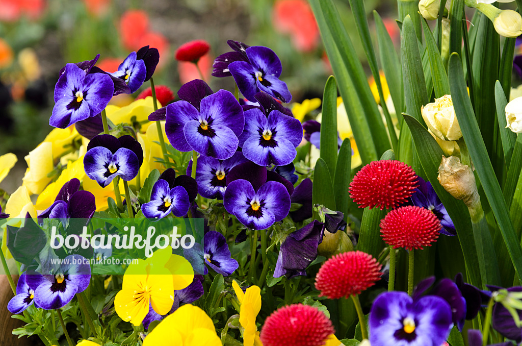 Hornveilchen (Viola cornuta) und Gänseblümchen (Bellis perennis)
