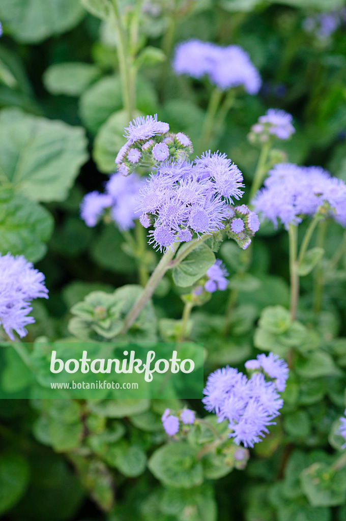 Ageratum houstonianum, auch bekannt als Leberbalsam, ist eine einjährige Pflanze mit flaumigen, blauen, violetten oder weißen Blüten. Sie bevorzugt sonnige Standorte und blüht von Sommer bis Herbst. Ideal für Beete, Rabatten und als Schnittblume. Die Pflanze ist leicht zu pflegen, mag feuchten Boden und ist bei Bienen beliebt. Achtung: Sie ist leicht giftig.