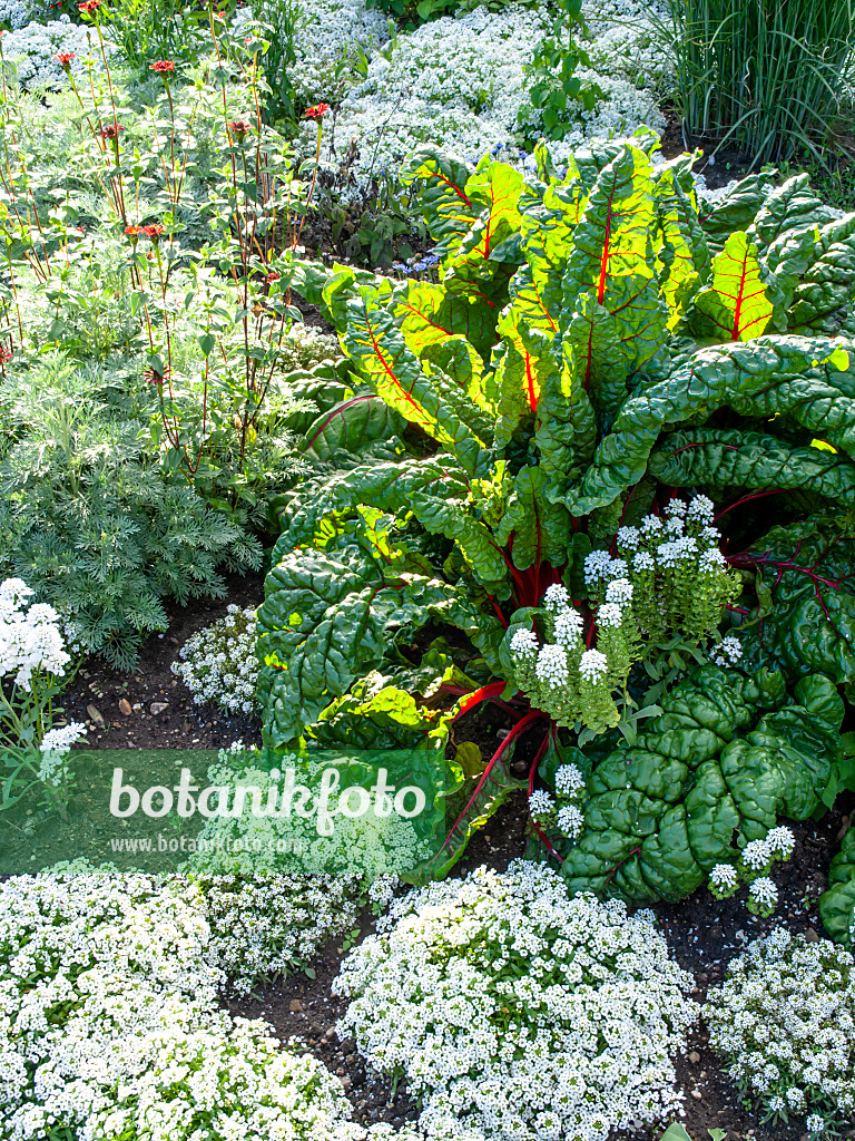 Mangold (Beta vulgaris var. cicla) und Duftsteinrich (Lobularia maritima)