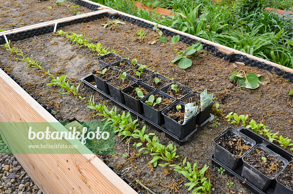 Mangold (Beta vulgaris var. cicla) und Speisekürbisse (Cucurbita maxima) in einem Hochbeet