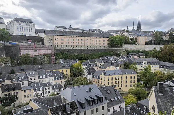 Mehrstöckige Häuser aus dem 18. Jahrhundert mit Schieferdächern, Rue de Trèves, Grund, Luxemburg