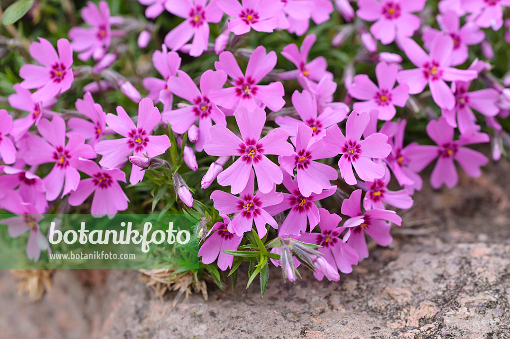 Phlox subulata, auch Polster-Phlox genannt, ist eine niedrig wachsende, mehrjährige Staude. Sie bildet dichte Teppiche mit kleinen, sternförmigen Blüten in Rosa, Lila, Weiß oder Blau. Die Pflanze blüht im Frühling und ist ideal für Steingärten, Trockenmauern oder als Bodendecker. Sie bevorzugt sonnige Standorte und durchlässige Böden. Phlox subulata ist winterhart und pflegeleicht.