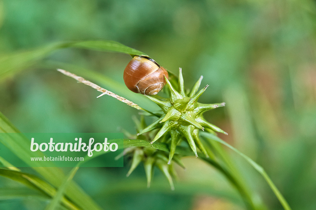 433199 - Morgensternsegge (Carex grayi) mit Schnecke