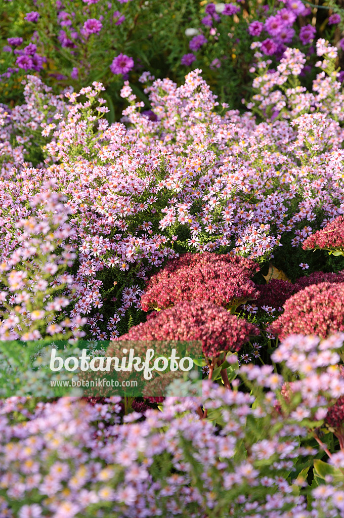 Myrtenaster (Aster ericoides 'Lovely' syn. Aster vimineus 'Lovely') und Große Fetthenne (Sedum telephium 'Herbstfreude' syn. Hylotelephium telephium 'Herbstfreude')
