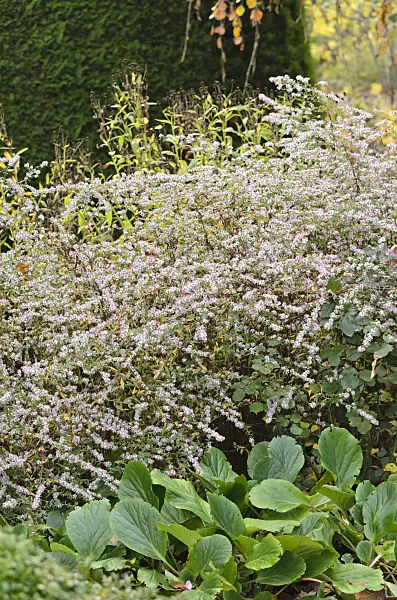 Neubelgien-Aster (Aster novi-belgii 'Violetta'), Neuengland-Aster (Aster novae-angliae 'Andenken an Alma Pötschke') und Myrtenaster (Aster pringlei 'White Star')