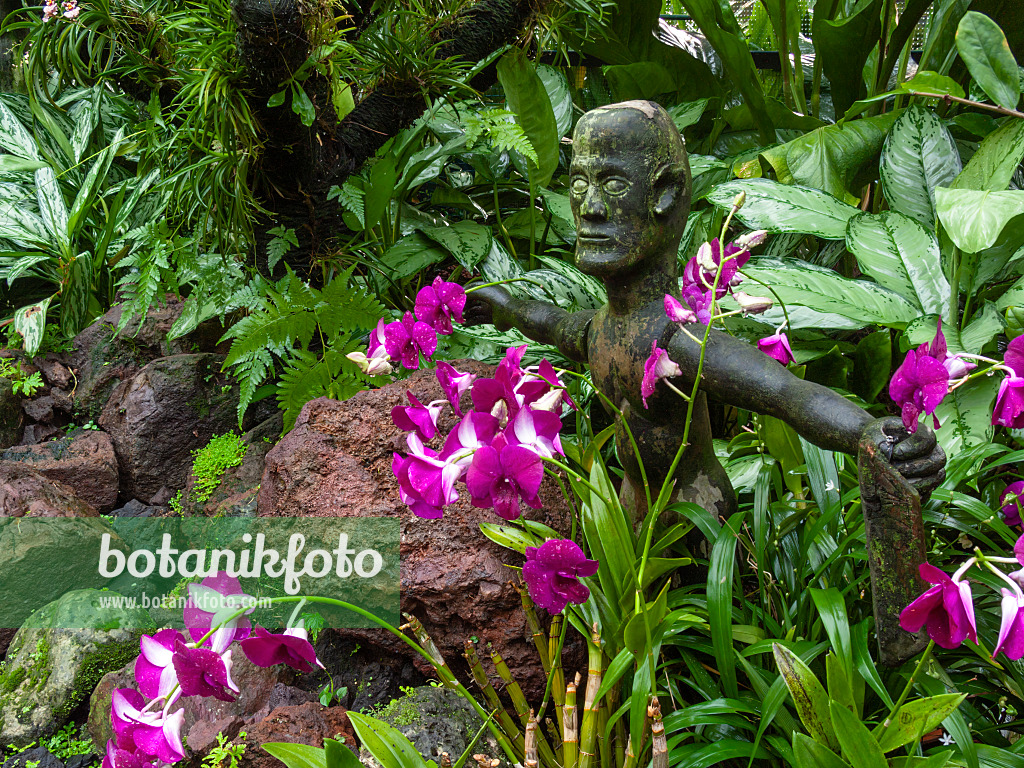 Orchideengarten mit Skulptur, Nationaler Orchideengarten, Singapur