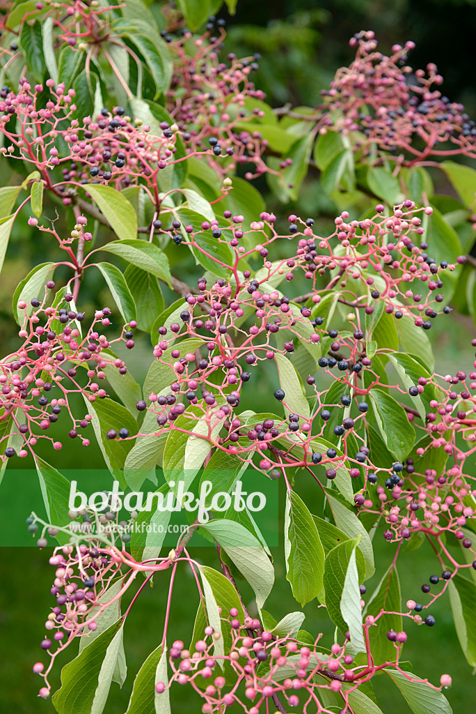 Cornus controversa, auch Pagoden-Hartriegel genannt, ist ein laubabwerfender Baum aus der Familie der Hartriegelgewächse. Er stammt aus Ostasien und wird bis zu 15 Meter hoch. Charakteristisch sind seine etagenartig angeordneten Äste und die weißen Blüten, die im Frühsommer erscheinen. Die Blätter sind elliptisch und färben sich im Herbst gelb bis rot. Ideal für sonnige bis halbschattige Standorte mit feuchtem Boden.