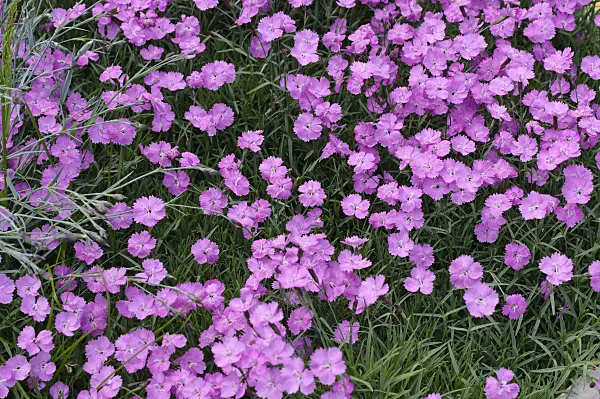 Dianthus gratianopolitanus, auch bekannt als Pfingst-Nelke oder Felsennelke, ist eine mehrjährige, polsterbildende Pflanze. Sie stammt aus Europa und bevorzugt sonnige Standorte mit durchlässigem, kalkhaltigem Boden. Die Pflanze bildet dichte Teppiche mit schmalen, blaugrünen Blättern und duftenden, rosa bis purpurroten Blüten von Mai bis Juni. Sie ist ideal für Steingärten, Trockenmauern oder als Bodendecker und benötigt wenig Pflege.