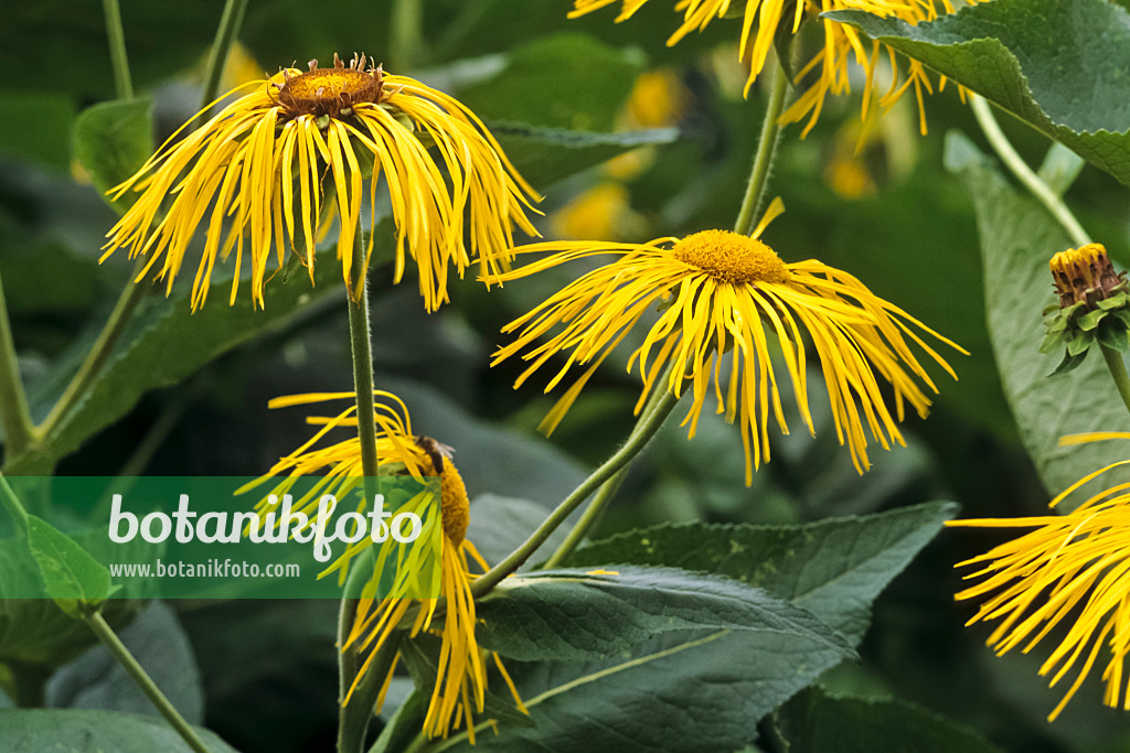 Inula magnifica, auch Pracht-Alant genannt, ist eine imposante Staude aus der Familie der Korbblütler. Sie wird bis zu 2 Meter hoch und trägt von Juli bis September große, gelbe Blüten. Die Pflanze bevorzugt sonnige Standorte und feuchte, nährstoffreiche Böden. Ideal für naturnahe Gärten oder als Solitärpflanze. Sie ist winterhart und zieht Bienen und Schmetterlinge an.