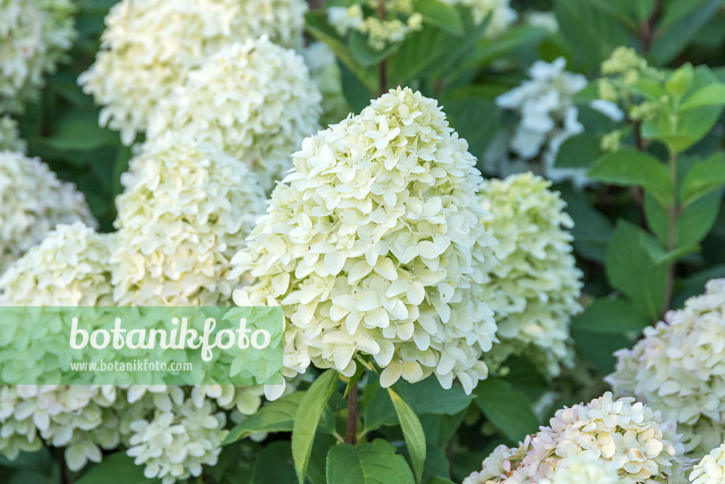 Hydrangea paniculata, auch Rispenhortensie genannt, ist ein sommergrüner Strauch mit kegelförmigen Blütenrispen. Sie blüht von Juli bis September in Weiß, Rosa oder Rottönen. Die Pflanze ist winterhart, pflegeleicht und bevorzugt sonnige bis halbschattige Standorte. Sie eignet sich gut für Gärten und lässt sich durch Rückschnitt leicht in Form halten.