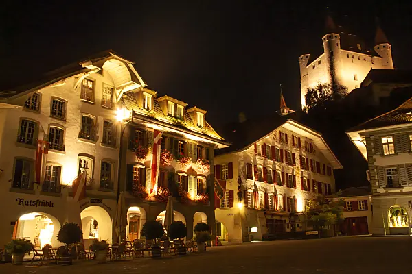 Schloss mit Denkmal für den Ritter Adrian von Bubenberg, Spiez, Schweiz
