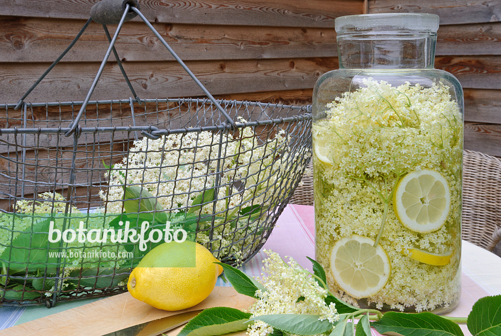 Schwarzer Holunder (Sambucus nigra) und Zitronen (Citrus limon) für die Zubereitung von Sirup