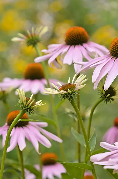 Echinacea purpurea, auch bekannt als Purpur-Sonnenhut, ist eine mehrjährige Pflanze aus der Familie der Korbblütler. Sie stammt aus Nordamerika und wird oft in Gärten und als Heilpflanze genutzt. Die Blüten sind purpurfarben mit einem markanten, kegelförmigen Zentrum. Sie bevorzugt sonnige Standorte und durchlässige Böden. In der Naturheilkunde wird sie zur Stärkung des Immunsystems eingesetzt.