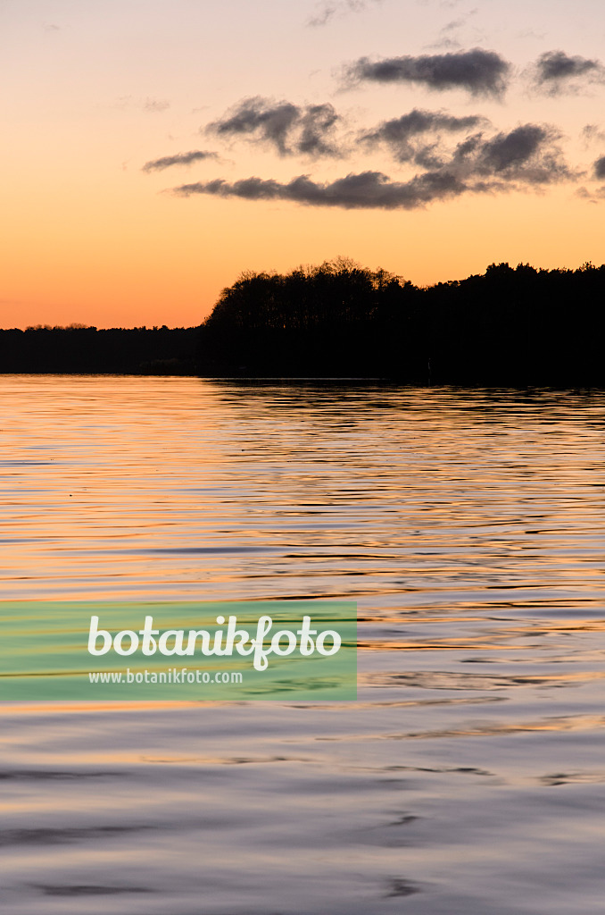 Sonnenuntergang am Seddinsee, Naturschutzgebiet Gosener Wiesen, Berlin, Deutschland