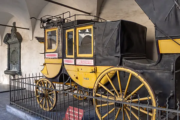 Stadtplatz mit Café an einem Sommertag, Brig, Schweiz
