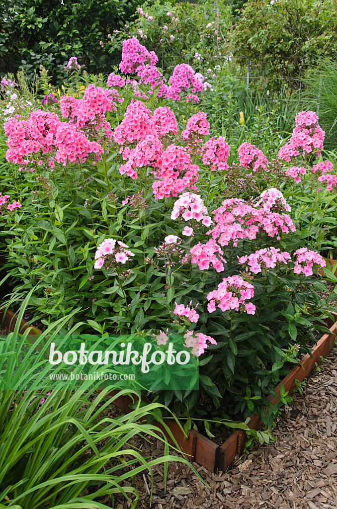 Phlox paniculata, auch bekannt als Flammenblume oder Stauden-Phlox, ist eine mehrjährige Pflanze mit auffälligen, duftenden Blüten. Sie blüht von Juli bis September in verschiedenen Farben wie Rosa, Lila, Weiß oder Rot. Die Pflanze bevorzugt sonnige bis halbschattige Standorte und feuchte, nährstoffreiche Böden. Sie erreicht eine Höhe von 80 bis 120 cm und eignet sich gut für Beete, Rabatten oder als Schnittblume. Phlox paniculata ist bei Bienen und Schmetterlingen beliebt.