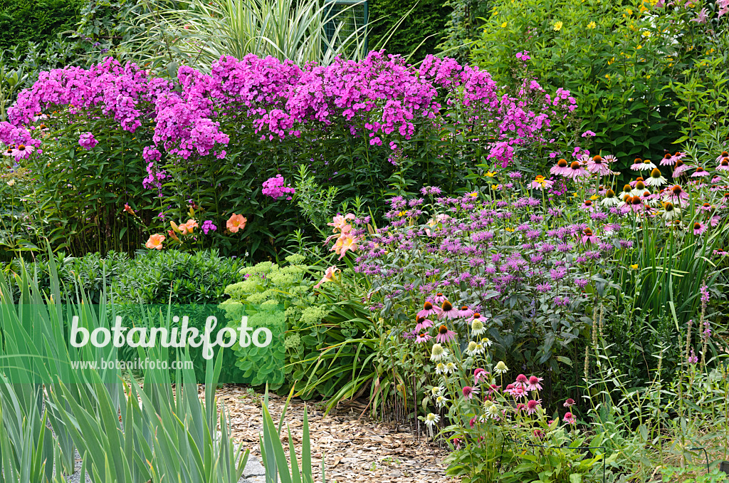 Staudenphlox (Phlox paniculata), Indianernesseln (Monarda) und Sonnenhüte (Echinacea purpurea)