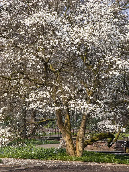 Magnolia stellata, auch Stern-Magnolie genannt, ist ein kleiner, langsam wachsender Baum oder Strauch. Sie stammt aus Japan und ist bekannt für ihre auffälligen, sternförmigen, weißen oder rosafarbenen Blüten, die im Frühjahr vor dem Laubaustrieb erscheinen. Die Pflanze bevorzugt sonnige bis halbschattige Standorte und gut durchlässige, leicht saure Böden. Sie ist winterhart und wird oft in Gärten als Ziergehölz verwendet.