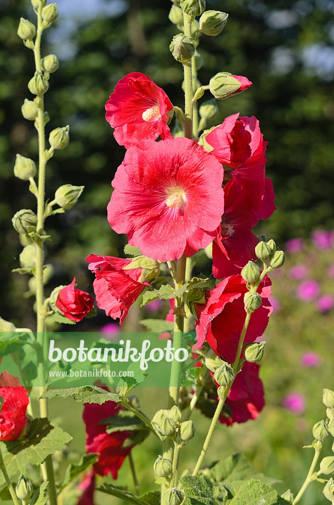 Alcea rosea, auch Stockrose genannt, ist eine beliebte Gartenpflanze aus der Familie der Malvengewächse. Sie wird bis zu 2 Meter hoch und blüht von Juli bis September in verschiedenen Farben wie Rosa, Weiß, Gelb oder Dunkelrot. Die Pflanze bevorzugt sonnige Standorte und nährstoffreiche Böden. Sie ist zweijährig und zieht Bienen und Schmetterlinge an. Stockrosen sind pflegeleicht, können aber von Malvenrost befallen werden.